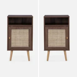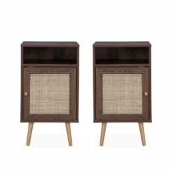 Alice’s Garden 2 Tables De Chevet Cannage Couleur Bois Foncé