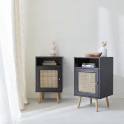 Alice’s Garden Tables De Chevet Noir Et Cannage 40 X 40 X 48cm