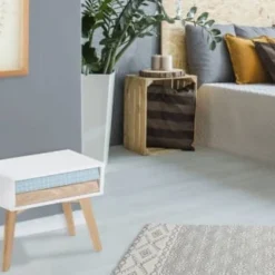 ReCollection Tables De Chevet Table De Chevet 2 Tiroirs Couleur Blanc Et Bois Clair