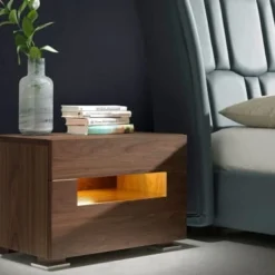 Angel Cerda Tables De Chevet Table De Chevet Placage Noyer Avec éclairage Intérieur Leds
