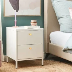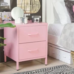 Beliani Tables De Chevet Table De Chevet 2 Tiroirs En Acier Rose