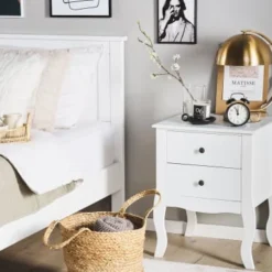 Beliani Tables De Chevet Table De Chevet Blanche à 2 Tiroirs