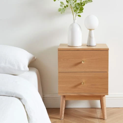 Casâme Tables De Chevet Chevet 2 Tiroirs Pieds Métal Effet Chêne