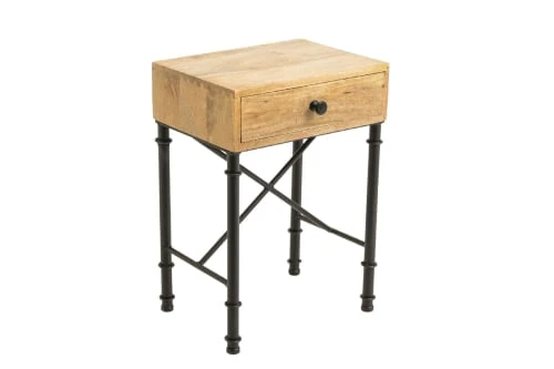 HOMN Tables De Chevet Table De Chevet 1 Tiroir, Couleur Chêne, Pieds En Métal En Noir