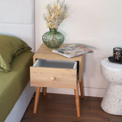 Casâme Tables De Chevet Chevet 2 Tiroirs Pieds Métal Effet Chêne