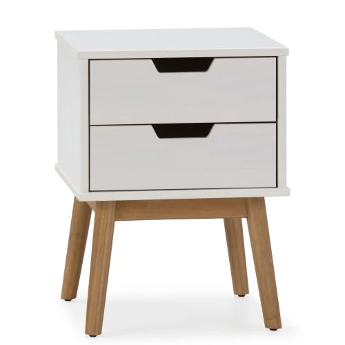 · Cette table de chevet est une armoire en bois massif avec une finition blanche qui possède trois grands tiroirs. Un meuble assorti aux autres pièces de la même collection Baku : commode et tables de chevet. Idéal pour ranger nos affaires ou les vêtements que nous pouvons facilement plier.