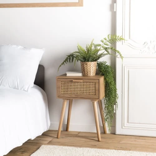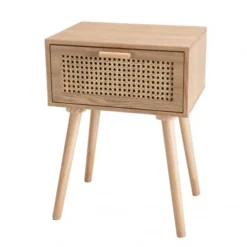Nordlys Tables De Chevet Table De Chevet 1 Porte En Rotin Gris