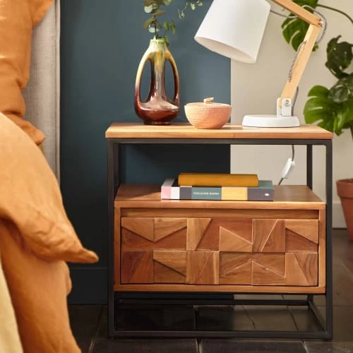 CasĂąme Tables De Chevet Chevet 2 Tiroirs Pieds MĂ©tal Effet ChĂȘne