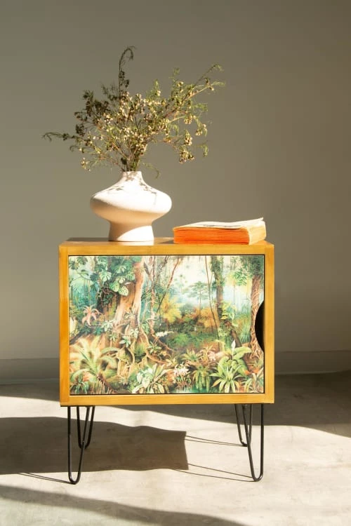 Porte frontale décorée par imprimé digital. Pieds métalliques peints avec peinture époxy.